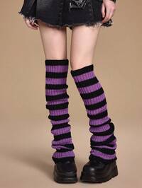 Goth 1 par de calentadores de piernas extra largos a rayas para mujer, cálidos