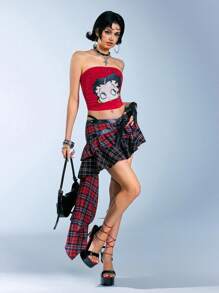 Betty Boop | ROMWE Top corto tubo con estampado de figura de dibujo animado y corazón de strass para mujer