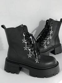 Goth Accesorio de calzado de 2 piezas para mujer, de estilo punk, con decoración de calavera plateada, cruz hueca, pentagrama cruzado y doble cadena, de estilo oscuro y versátil para el uso diario