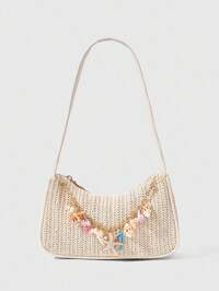 Fairycore 1 Set Bolso de hombro de playa tejido y accesorios, bolso de hombro de mujer con estilo de resort de playa personalizado y de moda (incluye 1 bolso y 1 set de accesorios de color aleatorio)
