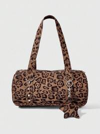 Fairycore 1 pieza Bolso de cubo con estampado de leopardo vintage, bolso de hombro retro con decoración de cadena de estrella para mujeres