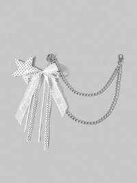 Anime 1 pieza Cadena de cintura con lazo de encaje con estampado de lunares y pentágrama en blanco y negro, estilo Y2K, accesorio de moda minimalista con patrón de onda Kawaii para bolso