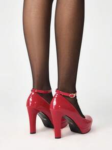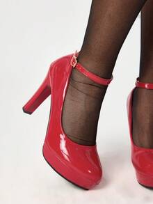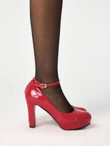 Zapatos de tacón alto de plataforma impermeable de punta cerrada con una correa para mujer, tacón formal de vestir de trabajo de tacón bajo