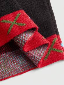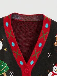 Cárdigan de mujer con contraste de color tejido con bordado de hombre de jengibre y muñeco de nieve de Navidad