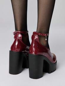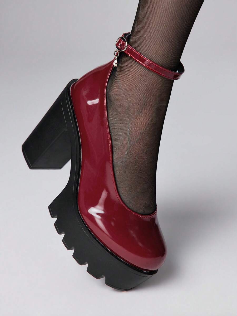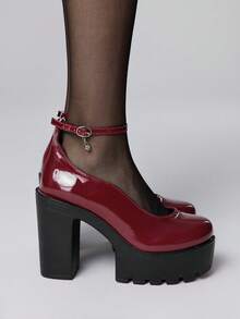 Goth Zapatos de mujer de punta cerrada con correa cruzada tipo Mary Jane, zapatos de plataforma punk gótica con tacón grueso, de un solo cinturón con hebilla, zapatos de uniforme JK, tacones altos formales impermeables para el trabajo