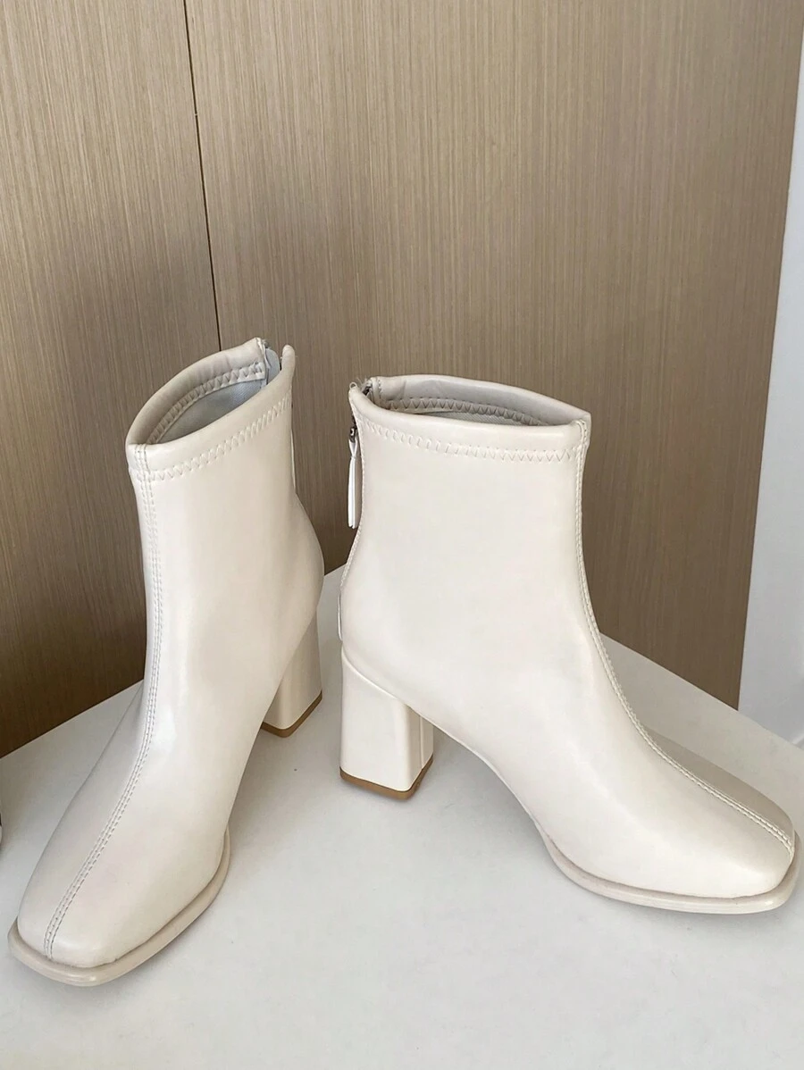Botines Y Botas Cortas Blancas De Tacón Alto Para Mujer