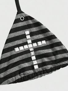 J-Fashion Top de tirantes de mujer a rayas negras y grises con tachuelas y cristales en forma de cruz, estilo Y2K