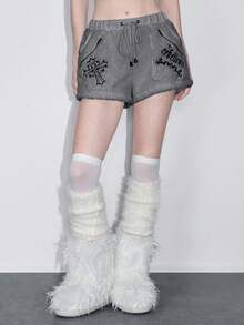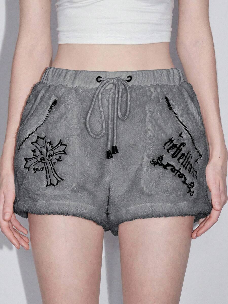 Goth Pantalones cortos de mujer con bordado de cruz gótica estilo Y2K, Halloween