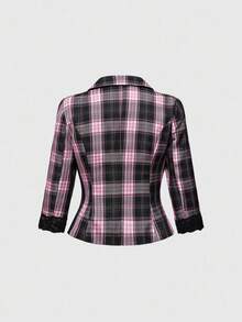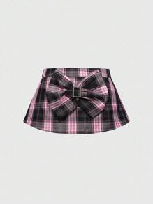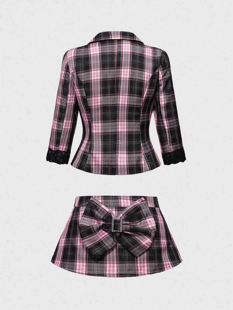 J-Fashion Conjunto de 2 piezas de falda a cuadros y traje con lazo sobredimensionado de encaje en estilo Harajuku Himekaji Y2K