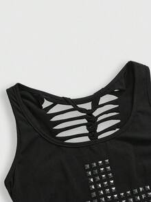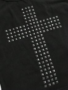 Grunge Punk Top ajustado con diseño de cruz y remaches, estilo Y2K punk, con espalda calada, de unicolor y versátil