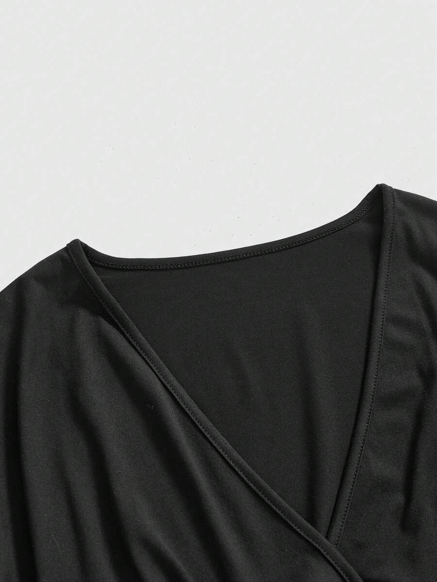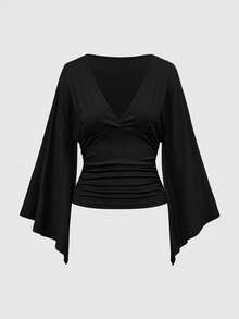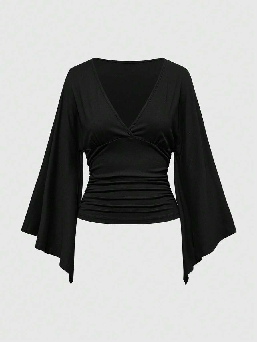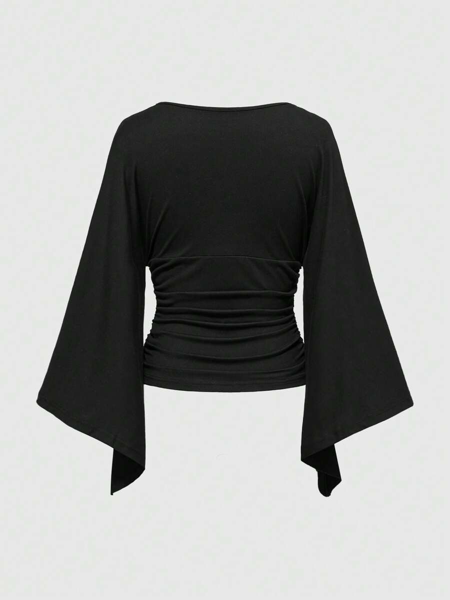 Camiseta ajustada con mangas acampanadas y fruncido lateral, estilo retro Y2K