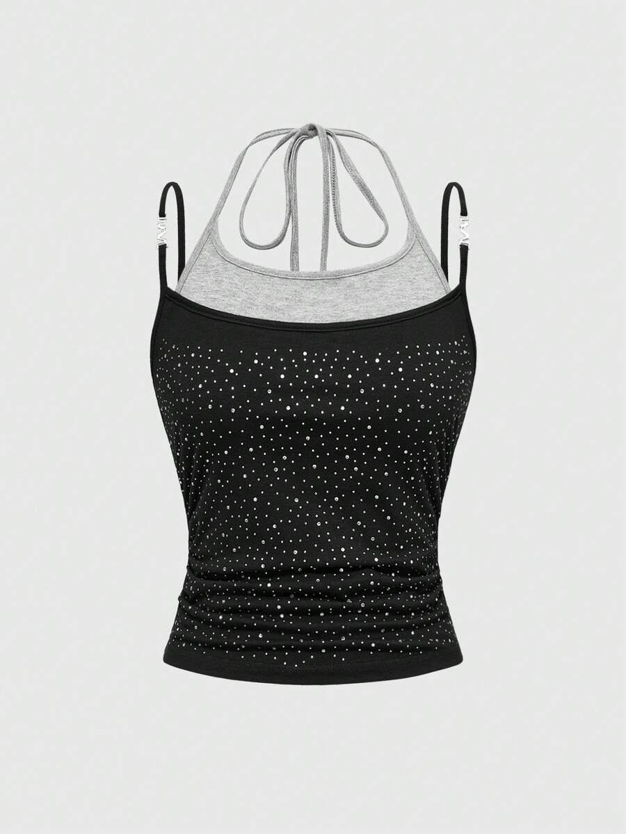 Camiseta de tirantes finos con strass brillantes estilo Y2K, conjunto sexy para fiestas y vacaciones