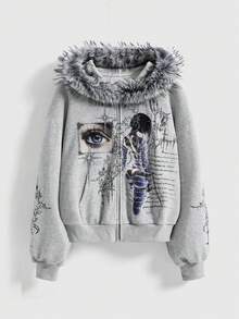 ROMWE Avant Sudadera con capucha de ajuste ceñido con estampado de espinas de la doncella mecánica de vanguardia de la subcultura Y3K para mujeres