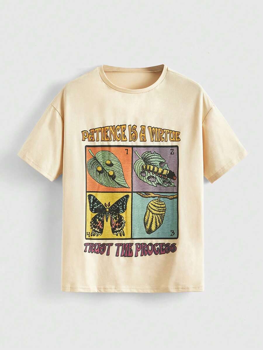 kmintern Camiseta De Manga Corta Con Estampado De Letra De Insecto Para Mujer